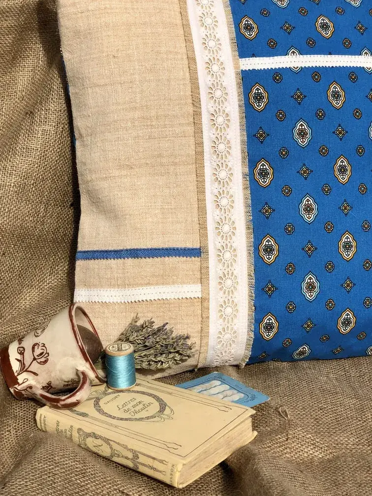 Housse coussin Provence bleu Brillane – tissu provençal composition verticale
