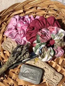 100% upcyclés … puisque les chouchous sont confectionnés avec les chutes de tissus utilisés pour les créations.
