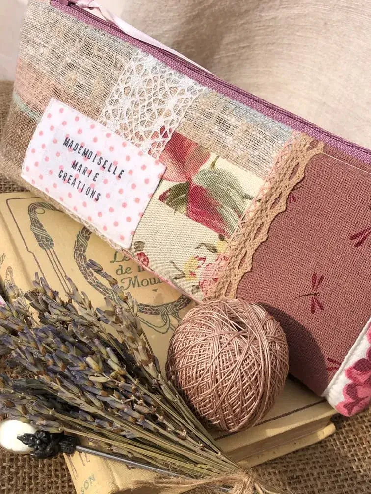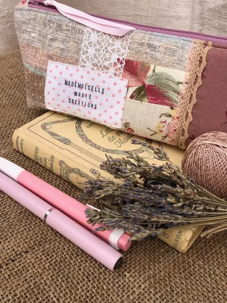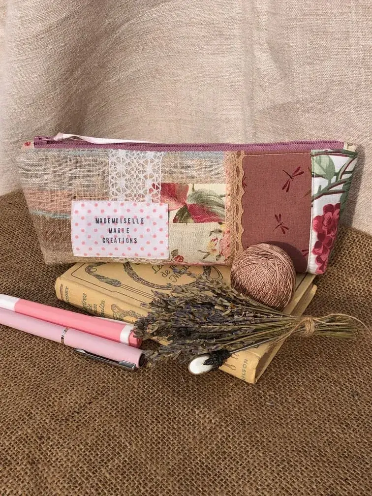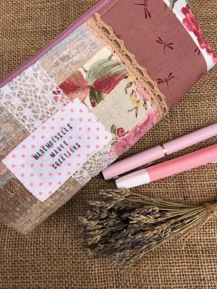 Trousse écoliere patchwork rose shabby romantique – Fleurs et dentelle